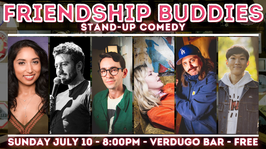 Even in a parallel universe, I think you’d still be up for night out with your FRIENDSHIP BUDDIES. This Sunday July 10th, the weekly stand-up comedy showcase continues bringing smiles to all those who attend. Hang out on the outdoor patio at Verdugo Bar where you will be treated to LA’s best comics, a specialty house-infused cocktail menu, an extensive collection of spirits, house-crafted cocktails on draft, boozey slushies, and a food truck from a rotation of local vendors! This week’s lineup hosted by Aaron Herzog and Max Fox includes