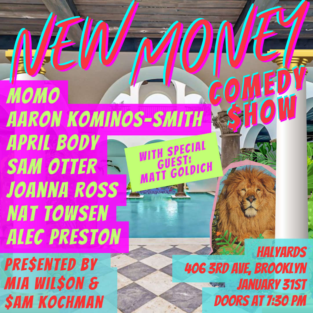 Dust off your Swarovski crystal phone case to come laugh with New York’s funniest comics at the New Money Comedy Show! You can’t beat some faux bling bling combined with genuine laughter. Your presenters Mia Wilson & Sam Kochman will be tripping the night fantastic at Brooklyn’s comedy hot spot, Halyards, for the best monthly comedy series featuring the funniest comics from Netflix, HBO, Comedy Central, The Daily Show, Late Night with Seth Meyers, The Tonight Show, NBC, ABC, Hulu, and more. Next Wednesday, January 31st, be entertained by this jam packed lineup: