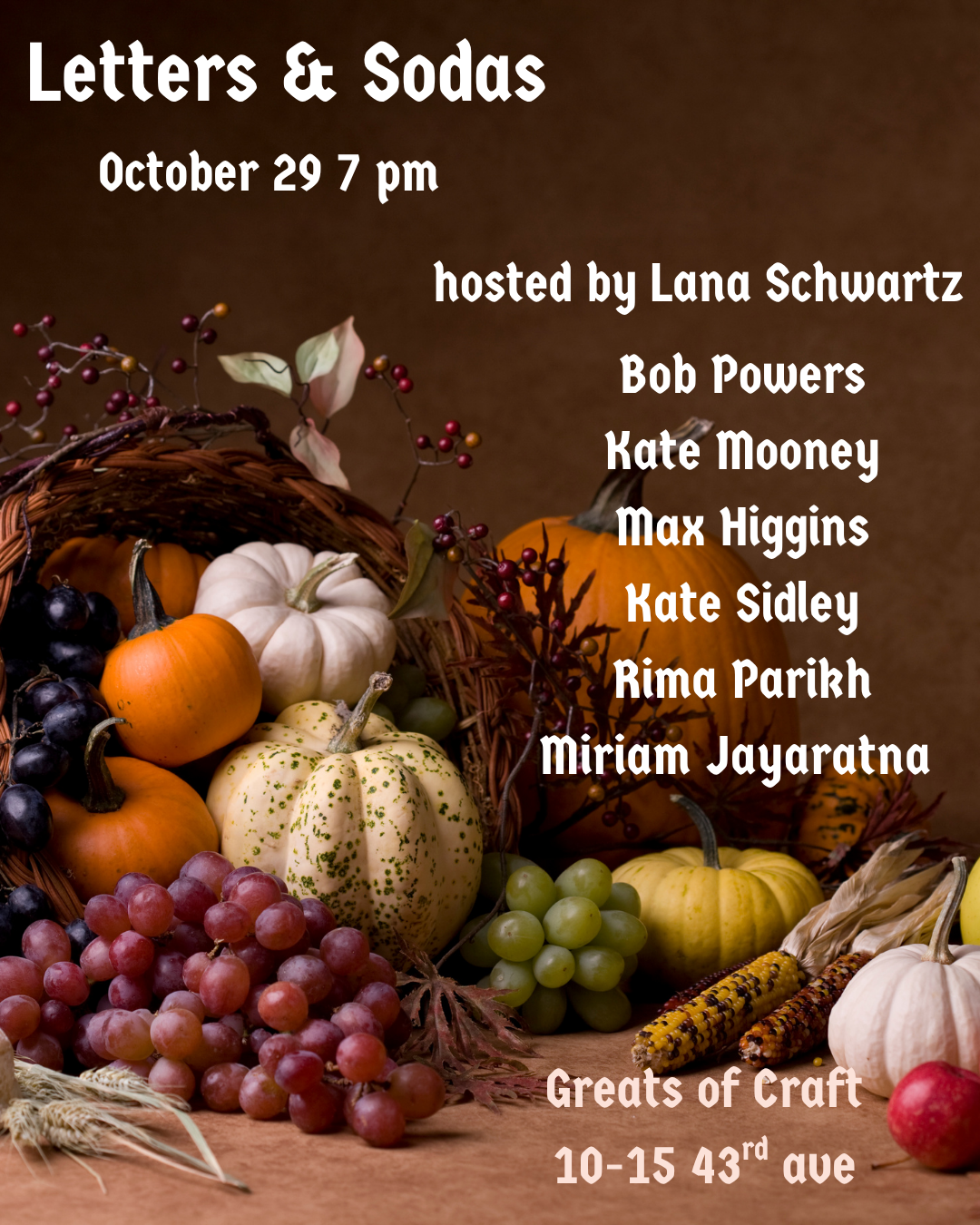 LETTERS & SODAS brings together standup comedy, humor pieces, fiction, and essay readings in a way you’ve never have been before (or at least not in recent memory). This Wednesday, October 29th, your host Lana Schwartz welcomes entertainers: