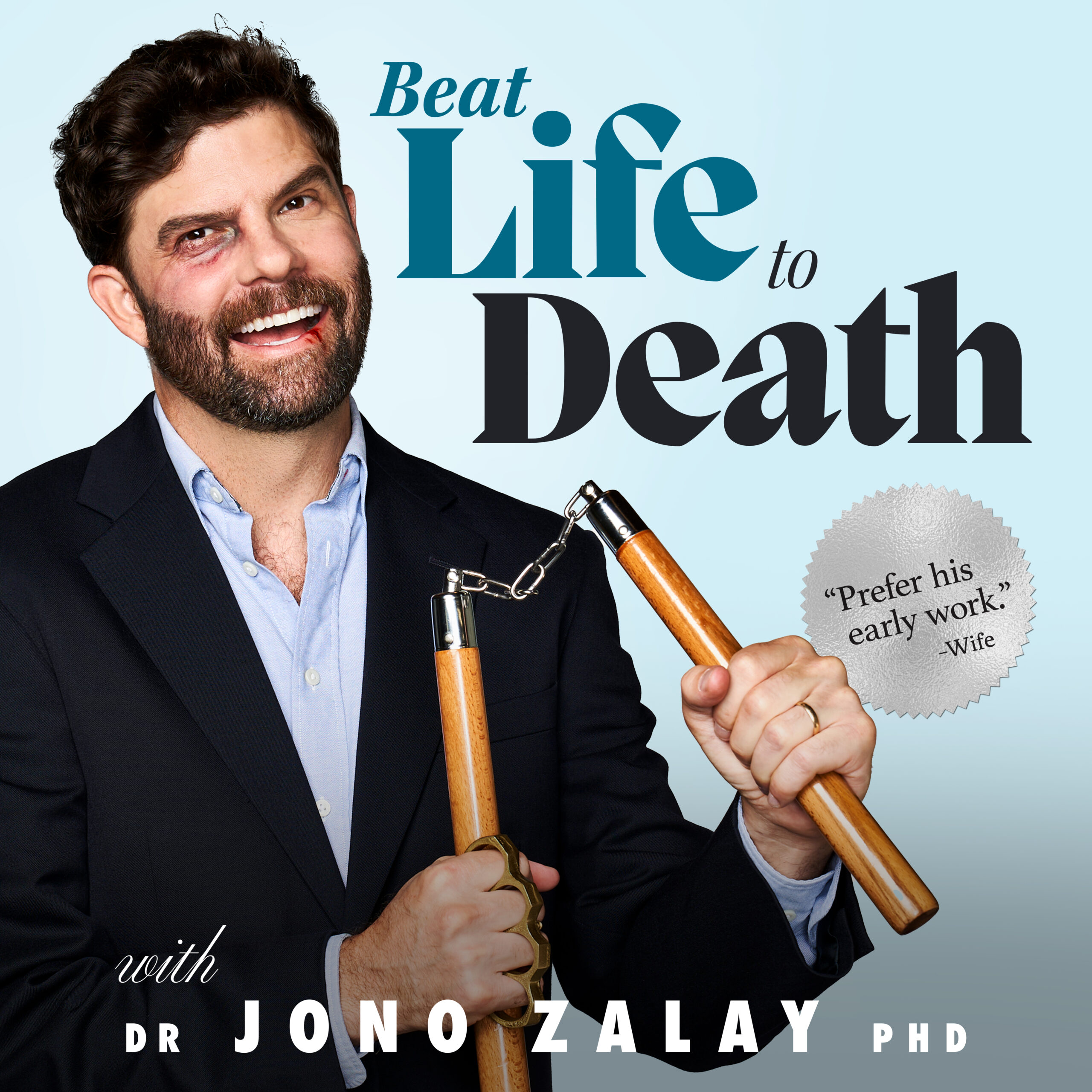On Beat Life to Death, Jono jokes about reaching midlife and its physical limitations, the misadventures of getting married: “the cops broke up my wedding(!!!)”, the side effects of homeschooling, a complete indignance with the political landscape, and his dad’s antics as an ungovernable curmudgeon.