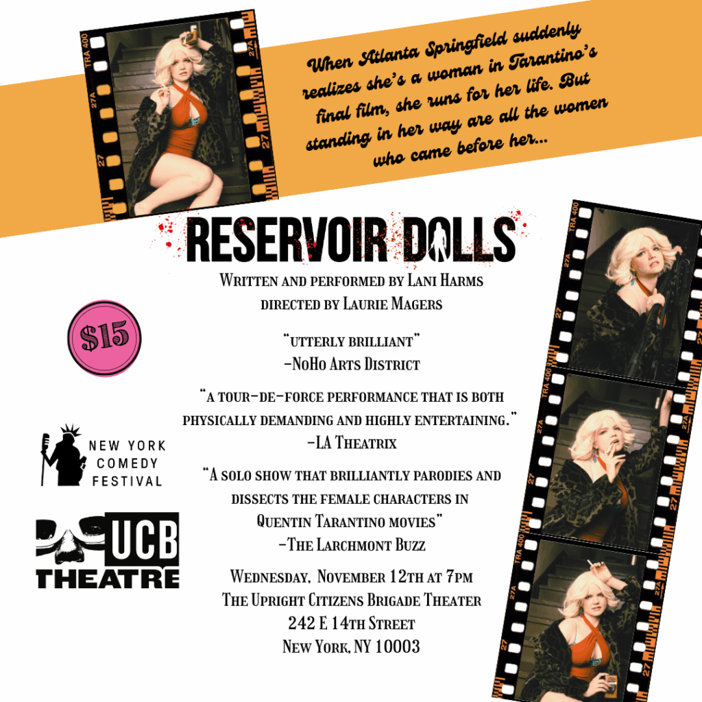 Reservoir Dolls is an award-nominated solo comedy show about what it takes to survive as a woman in a man’s world, written and performed by Lani Harms and directed by Laurie Magers. The show will run for ONE NIGHT ONLY, presented by the New York Comedy Festival at the Upright Citizens Brigade Theater, NY.