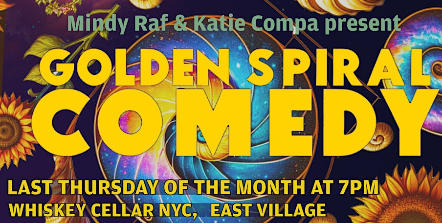Your gleaming entertainment attraction, the GOLDEN SPIRAL, is back TONIGHT, November 20th at Whiskey Cellar NYC! Named one of the best NYC comedy shows run by women, hosts Mindy Raf and Katie Compa bring the top comics working today in New York and beyond as they welcome you into the Spiral on the last Thursday of the month. This go-round the show will feature: