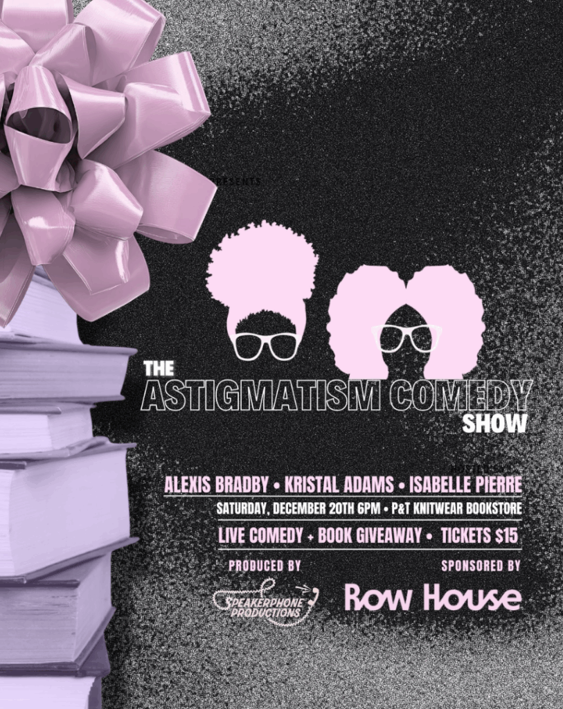 Astigmatism is more than just a show; it’s a sisterhood. Fun-loving Black women, Alexis Bradby, Kristal Adams, and Isabelle Pierre bring together underrepresented comedians and authors from all walks of life to share laughter, stories, and support. It all happens at the family owned bookstore, P&T Knitwear.