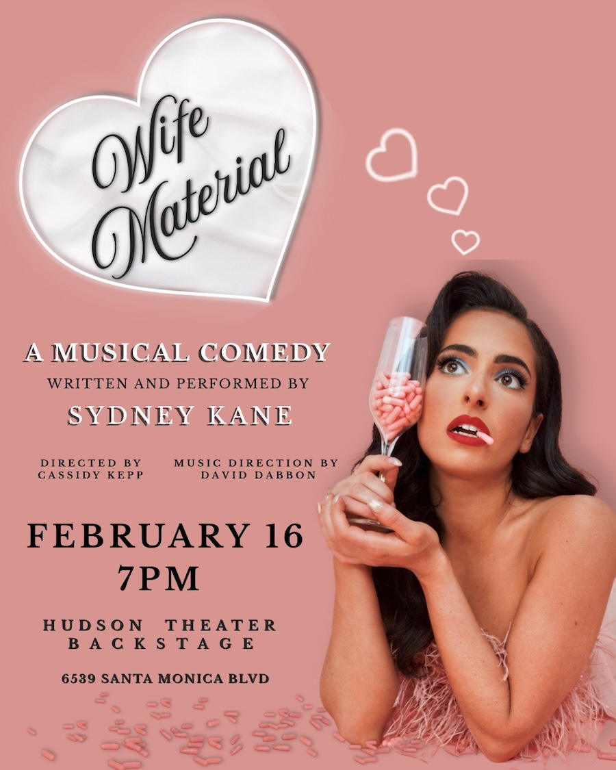 After a sold out SF Sketchfest debut, SYDNEY KANE‘S WIFE MATERIAL is heading to Los Angeles. A one hour original musical comedy about the trials and tribulations of what it means to be (or not be) WIFE MATERIAL, Kane’s show has sold out every single date she has performed. Starting as what was supposed to be a solo Cabaret one-off evolved into a full one-woman musical comedy, Wife Material.