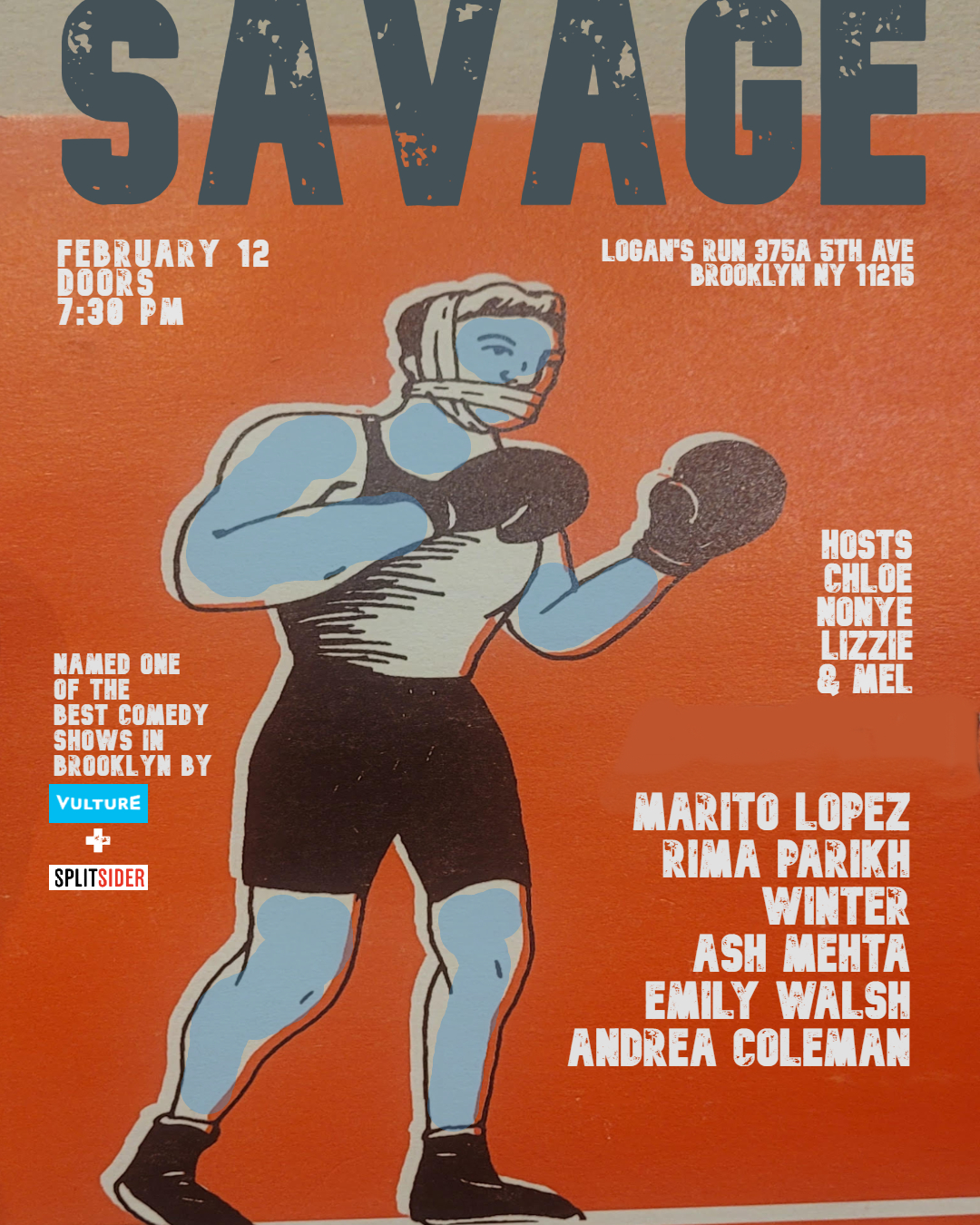 Named one of the Best Comedy Shows in Brooklyn by Vulture, SAVAGE takes place every 2nd Thursday of the month at Logan’s Run in Park Slope. Take in some of the funniest NYC comedy notables as you were meant to: for FREE in a Brooklyn bar basement. Hosted by Lizzie Martinez, Melissa Rocha, Nonye Brown-West, and Chloé Chunha, the upcoming show will feature these notable talents: