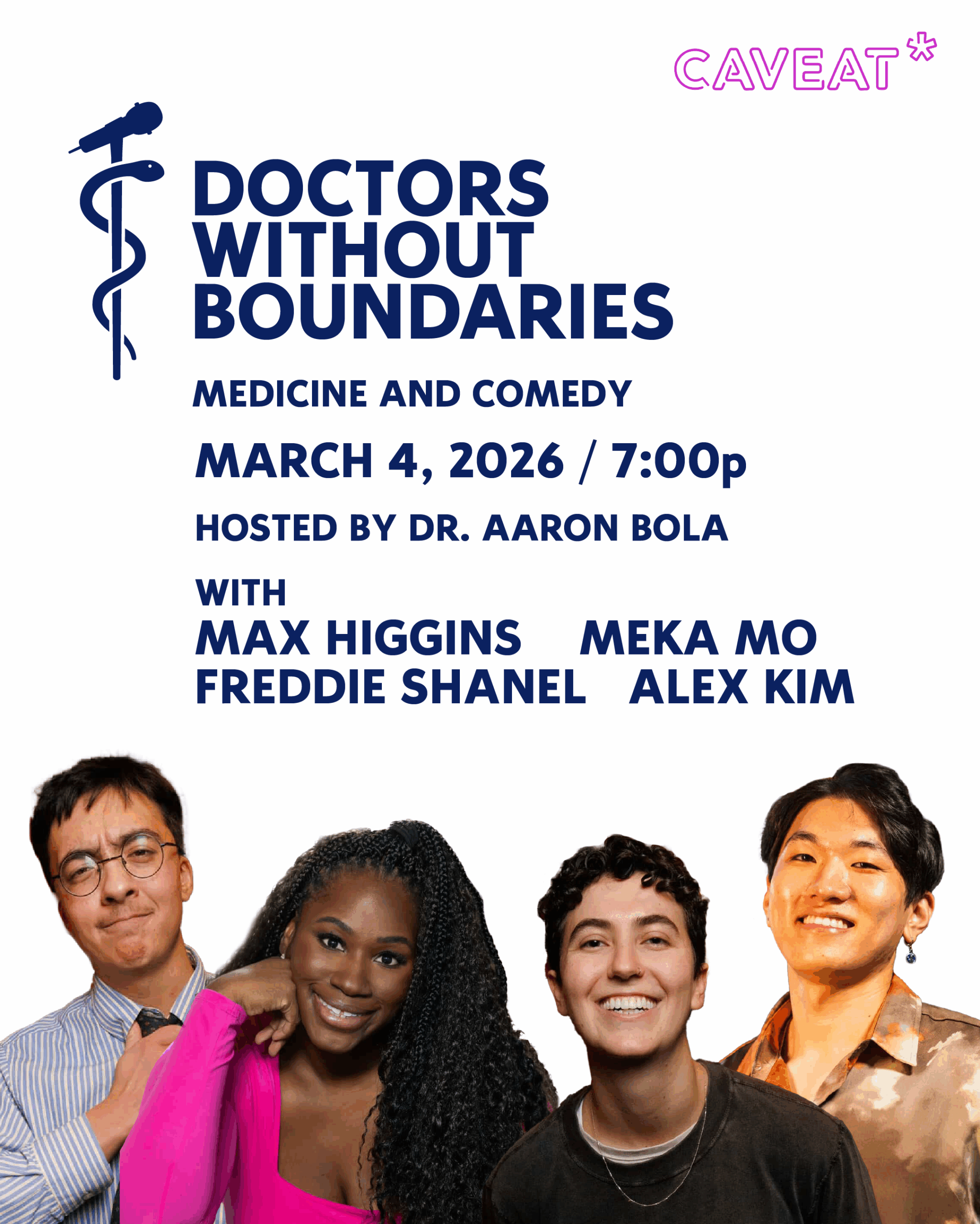 Greetings, life lovers! Join real-life ER doctor Aaron Bola and friends as they welcome chronically over-sharing comedians to tell stories of their weirdest diagnoses. This show is a healthy hypochondriac’s dream complete with a “No Co-Pay” question box, so that you can ask the doctors your own embarrassing medical questions. The DOCTOS WITHOUT BOUNDARIES lineup for the event will include:
