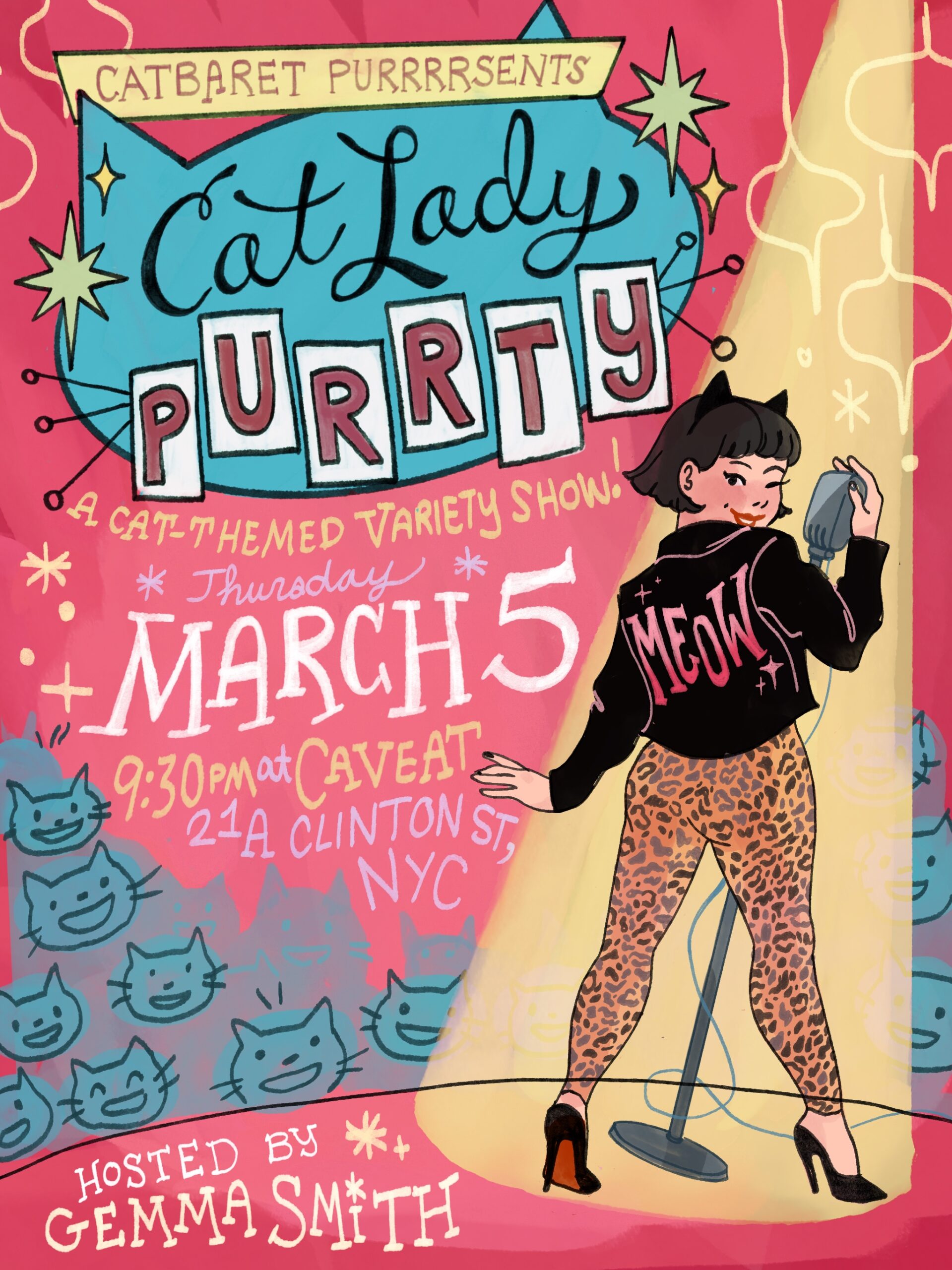 CATBARET returns to Caveat on Wednesday, March 5 with a Cat Lady Purr-ty — a cat-themed variety show celebrating Cat Lady culture in all its glory.