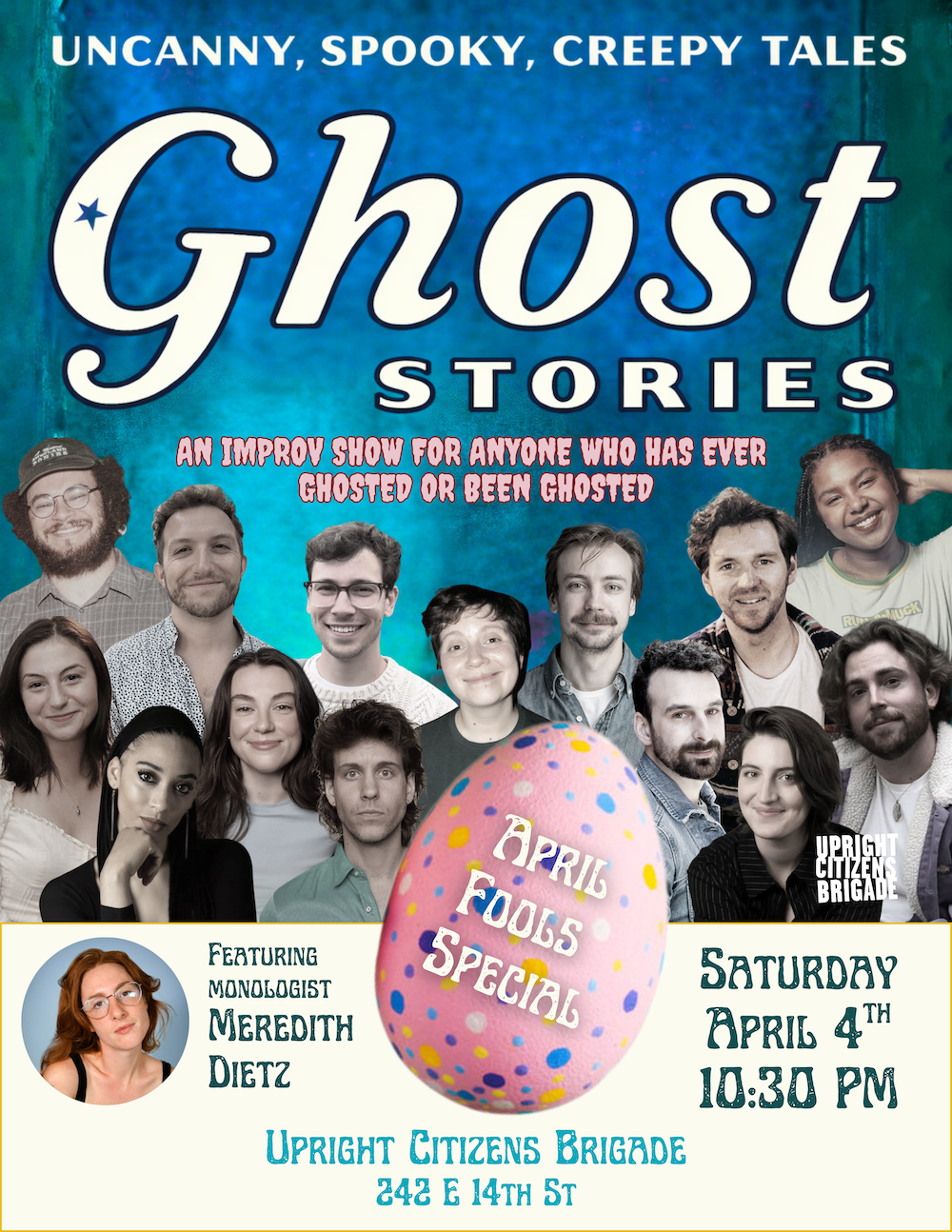 First, you’ll hear one of NYC’s funniest stand-ups share a ghastly tale of a time they got ghosted. Then, a comedy coven will harness the magic of improv to commune with the ghost and reveal their whereabouts.