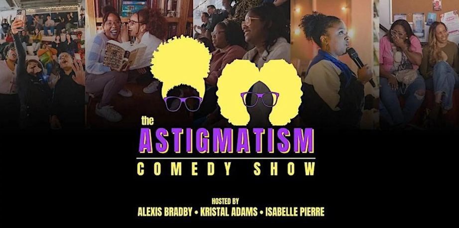 Astigmatism Comedy is more than just a show; it’s a sisterhood. The fun-loving women, Alexis Bradby, Kristal Adams, and Isabelle Pierre, bring together underrepresented comedians and authors from all walks of life to share laughter, stories, and support.