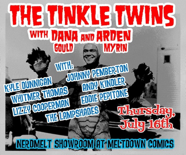 Feeling the need to ‘tinkle’? No, not that kind of tinkle! NerdMelt Showroom presents The Tinkle Twins hosted by Dana Gould and Arden Myrin TONIGHT (July 16). This monthly variety show features copious amounts of tinkletastic stand-up peppered with your occasional musician or magician. Tonight’s lineup is beyond impressive: