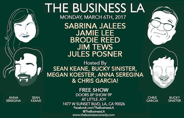 Hey, you’ve still got time before the official ides of March kicks in, so why not have a comedy blowout with THE BUSINESS LA</font>. TONIGHT at Echo Park’s Little Joy, the vibe is totally “pre-tech bubble SF” with a dash of LA cool. Your fierce and casual lineup includes