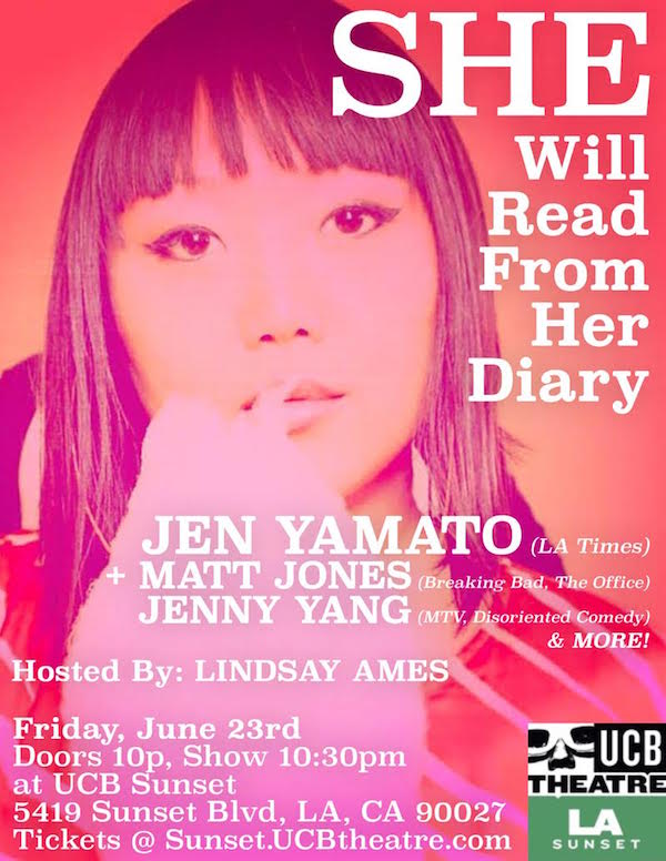 Hey, there’s nothing wrong with bringing up the past. In fact, it can be quite cathartic. At Lindsay Ames’ monthly MY DIARY show the past is unleashed through celeb diaries. Comedians, actors, artists, athletes and more explore the mini gold mines that lie within their diaries. Using stand-up, storytelling, sketch, videos, and other types of performance these brave souls deal with their past emotions. Friday, June 23 at UCB Sunset you could enjoy laughter and memories with these intrepid entertainers: