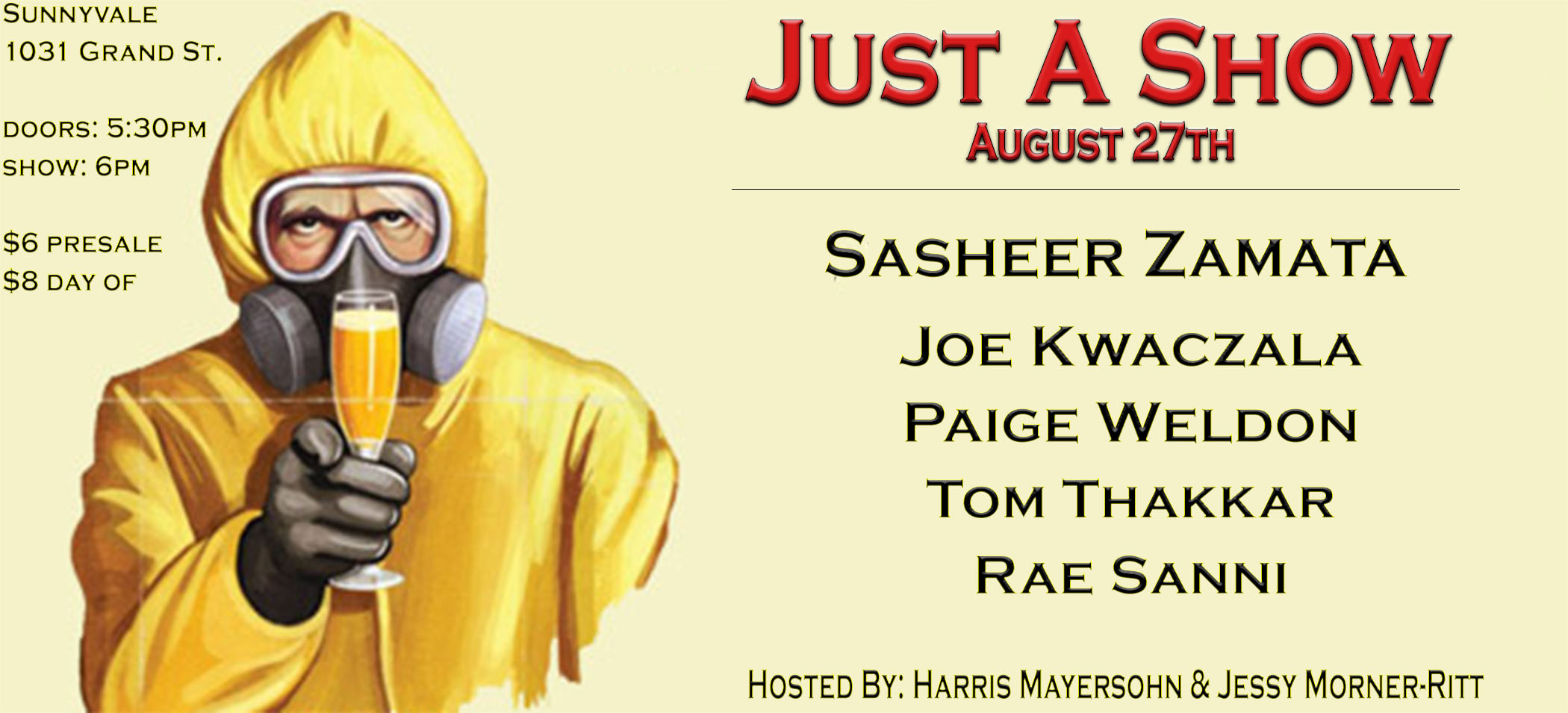 Are you ready for some comedy jostling in East Williamsburg? Than come on down to JUST A SHOW at Sunnyvale. Sunday, August 27th Harris Mayersohn (Late Show with Stephen Colbert) & Jessy Morner-Ritt (Funny Or Die) are your hosts for a laugh-inducing comedy parade featuring the best stand-up, sketch and variety New York has to offer. This month’s lineup includes