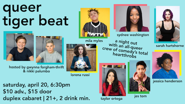 What are the upsides of having your comedy show on a day like 4/20? Well, in addition to being totally chill, probably that your comedy lineup will appear EVEN MORE prepared for the cover of QUEER TIGER BEAT! Come see Nikki Palumbo and Gwynna Forgham-Thrift (who have written and performed for UCB , Reductress, Above Average, and Dyke Power[point]) host the standup comedy show “that features all their hunkiest, funniest friends” showing off their comedy heartthrob talents. This month’s issue includes